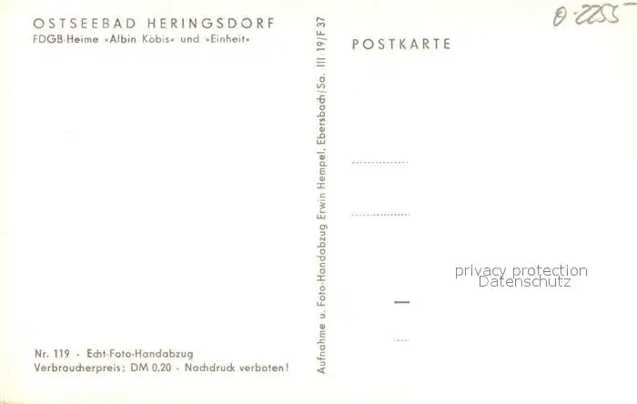 Heringsdorf_Ostseebad_Usedom FDGB-Heime Albin K?bis und Einheit Heringsdorf_Ostseebad postalisch nicht gelaufen nach 1965 Erhaltung siehe scans [LiesaD40] LiesID40