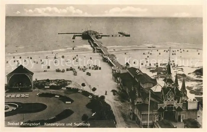 Heringsdorf_Ostseebad_Usedom Konzertplatz und Seebruecke Fliegeraufnahme Heringsdorf_Ostseebad postalisch nicht gelaufen 1921-1965 Erhaltung siehe scans [FriedD77] Frierer