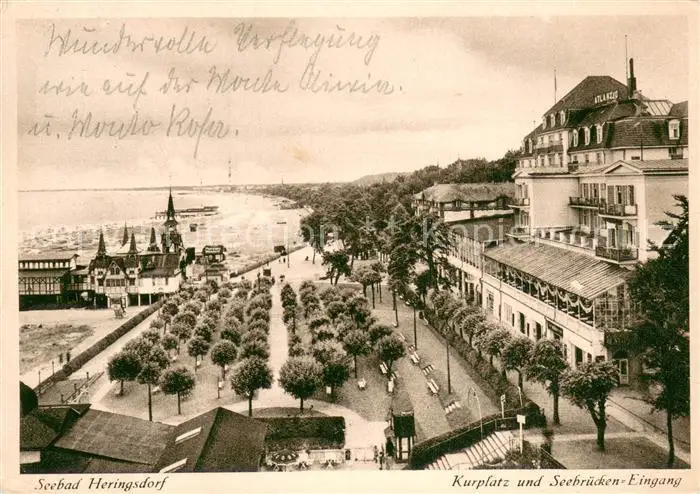 Heringsdorf_Ostseebad_Usedom Kurplatz und Seebruecken Eingang Heringsdorf_Ostseebad postalisch gelaufen 1934 Erhaltung siehe scans [WerneD78] WernPID7