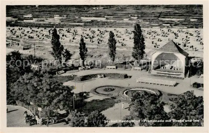 Heringsdorf_Ostseebad_Usedom Promenade mit Strand und See Konzertpavillon Heringsdorf_Ostseebad postalisch nicht gelaufen 1954 Erhaltung siehe scans [FriedD77] Frierer