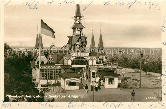 Heringsdorf_Ostseebad_Usedom Seebruecken Eingang Heringsdorf_Ostseebad postalisch gelaufen 1955 Erhaltung siehe scans [WerneD78] WernPID7