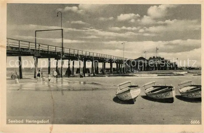Heringsdorf_Ostseebad_Usedom Strand Seebruecke Heringsdorf_Ostseebad postalisch gelaufen 1955 Erhaltung siehe scans [FriedD77] Frierer