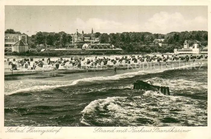 AK / Ansichtskarte Heringsdorf_Ostseebad_Usedom Strand mit Kurhaus Strandcasino Heringsdorf_Ostseebad