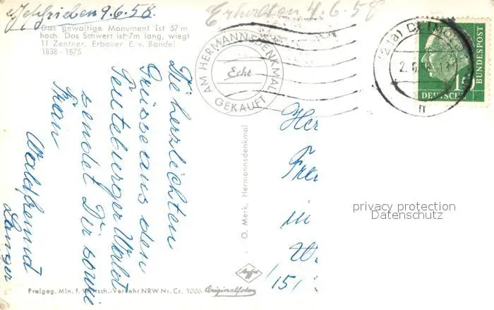 Hermannsdenkmal Panorama Hermannsdenkmal postalisch gelaufen 1958 Erhaltung siehe scans [KathaD81] Kathoren