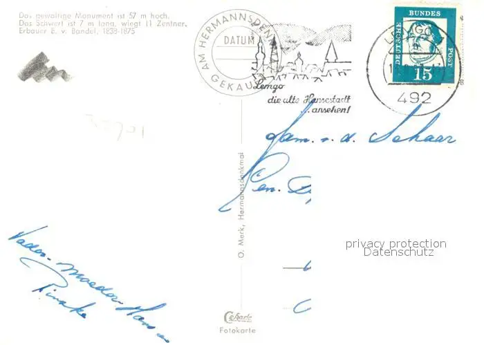Hermannsdenkmal Schloss Externsteine Detmolder Theater Donoperteich Hermannsdenkmal postalisch gelaufen 1921-1965 Erhaltung siehe scans [PaolaD17] PaolPID1
