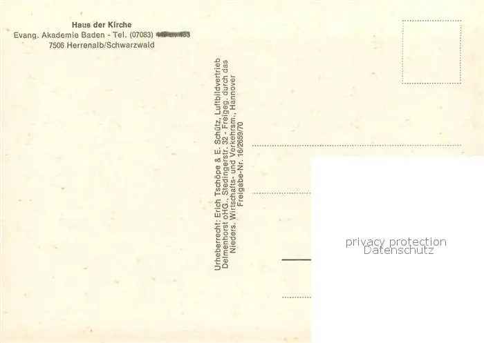 Herrenalb_Bad Haus der Kirche Akademie Baden Fliegeraufnahme Herrenalb_Bad postalisch nicht gelaufen nach 1965 Erhaltung siehe scans [WerneD78] WernPID7