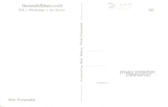 Herrenalb_Schwarzwald Blick vom Marienweg in das Gaistal postalisch nicht gelaufen 1921-1965 Erhaltung siehe scans [WerneD78] WernPID7