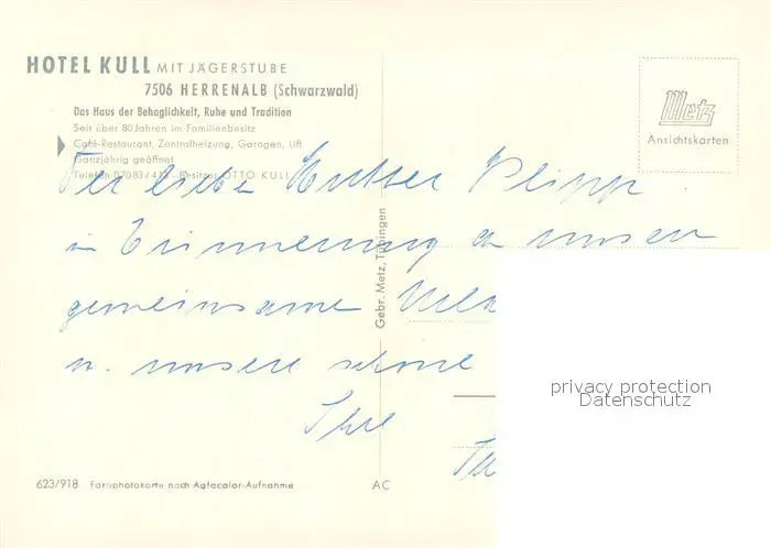 Herrenalb_Schwarzwald Hotel Kull mit Jaegerstube postalisch nicht gelaufen nach 1965 Erhaltung siehe scans [WerneD78] WernPID7