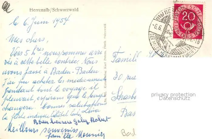 Herrenalb_Schwarzwald Panorama postalisch gelaufen 1954 Erhaltung siehe scans [KathaD81] Kathoren