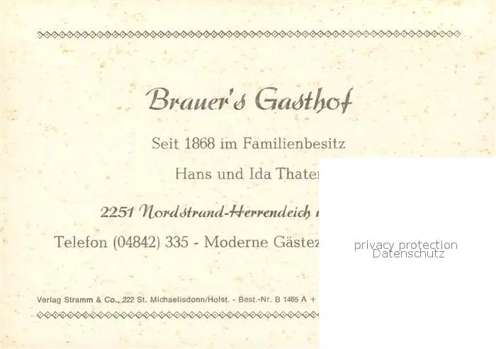 Herrendeich Brauer's Gasthof Restaurant Herrendeich postalisch nicht gelaufen nach 1965 Werbekarte (keine Postkarte) Erhaltung siehe scans [FriedD77] Werbekarte (keine Postkarte) Frierer