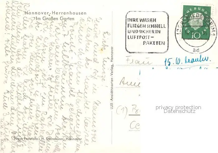 Herrenhausen_Hannover Schloss Grosser Garten Eingangstor Herrenhausen Hannover postalisch gelaufen 1959 Erhaltung siehe scans [FriedD77] Frierer