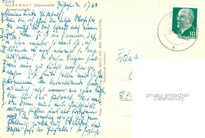 Herrnhut Comeniusstrasse Herrnhut postalisch gelaufen 1969 Erhaltung siehe scans [WerneD78] WernPID7
