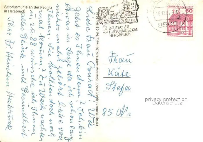 Hersbruck Satoriusmuehle a. d. Pegnitz Hersbruck postalisch gelaufen 1987 Erhaltung siehe scans [LiesaD40] LiesID40