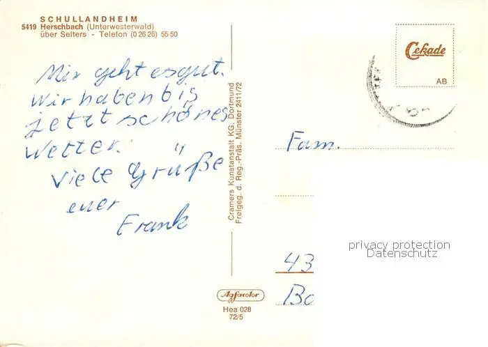 Herschbach_Unterwesterwald Fliegeraufnahme postalisch gelaufen nach 1965 Erhaltung siehe scans [WerneD78] WernPID7