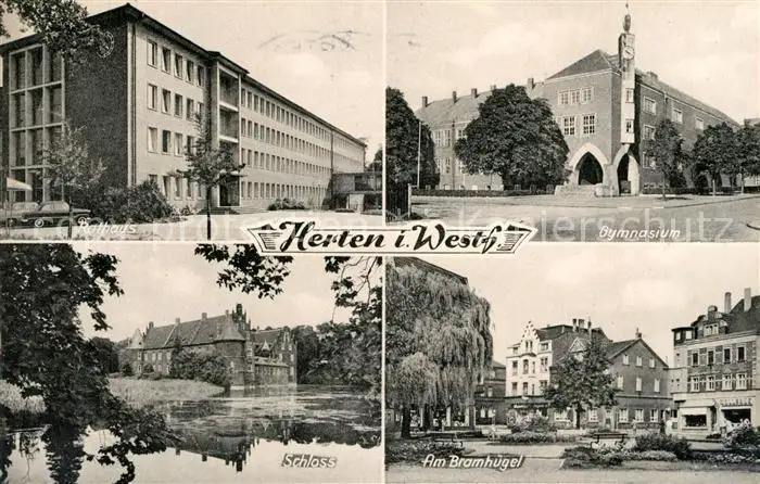 AK / Ansichtskarte Herten_Westfalen Rathaus Gymnasium Schloss Am Bramhuegel Herten_Westfalen