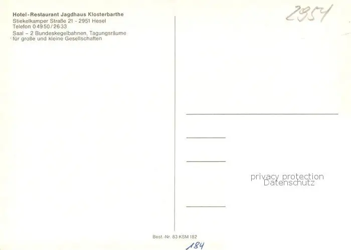 Hesel_Ostfriesland Jagdhaus Klosterbarthe Hesel_Ostfriesland postalisch nicht gelaufen nach 1965 Erhaltung siehe scans [LiesaD40] LiesID40