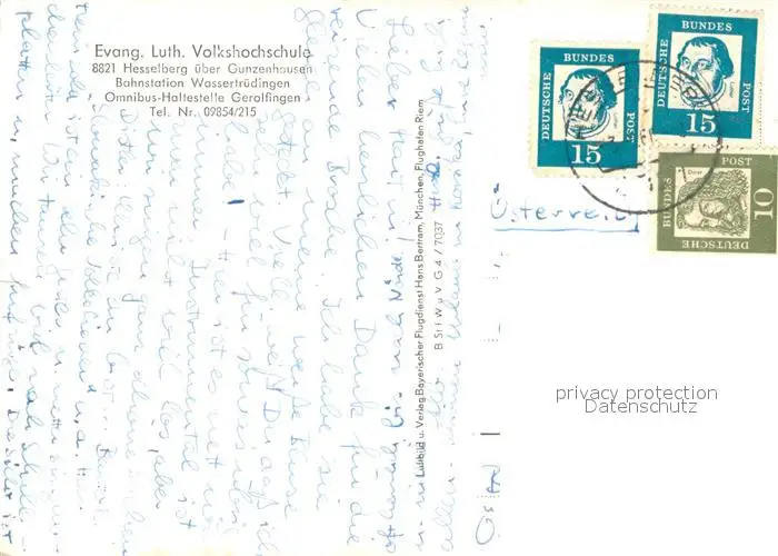 Hesselberg_Gunzenhausen Ev luth Volkshochschule Hesselberg Gunzenhausen postalisch gelaufen nach 1965 Fliegeraufnahme Erhaltung siehe scans [WerneD78] Fliegeraufnahme WernPID7
