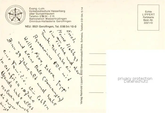 Hesselberg_Gunzenhausen Ev luth Volkshochschule Hesselberg Teilansichten Hesselberg Gunzenhausen postalisch nicht gelaufen nach 1965 Erhaltung siehe scans [WerneD78] WernPID7