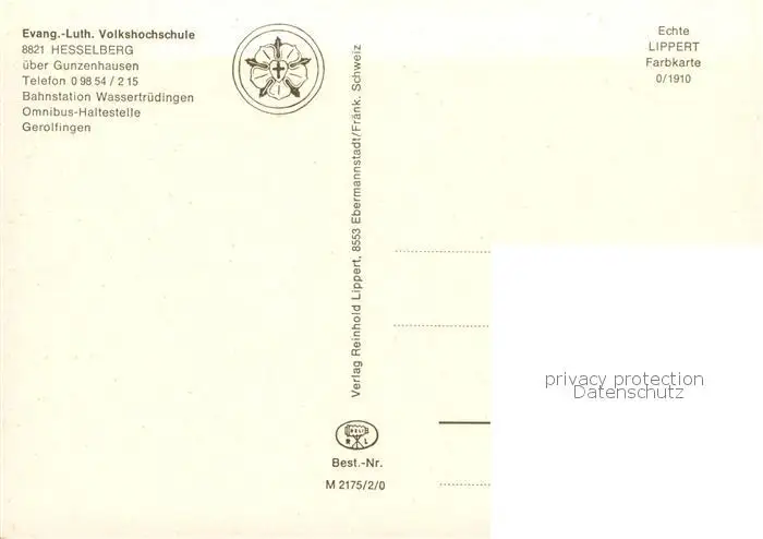 Hesselberg_Gunzenhausen Evang. Luth. Volkshochschule Hesselberg Gunzenhausen postalisch nicht gelaufen nach 1965 Erhaltung siehe scans [FriedD77] Frierer