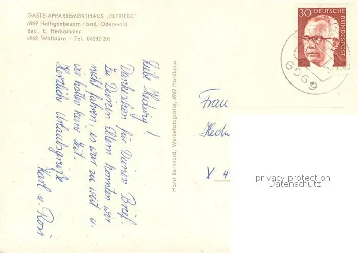 Hettigenbeuern Gaeste-Appartementhaus Elfriede Hettigenbeuern postalisch gelaufen 1974 Erhaltung siehe scans [FriedD77] Frierer