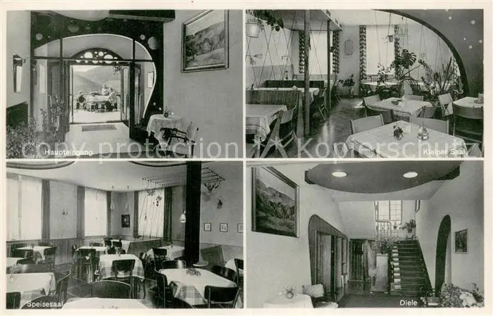 Hettigenbeuern Pension u. Erholungsheim Diedrich Innenansichten d. Speisesaals u. Diele Hettigenbeuern postalisch nicht gelaufen 1921-1965 Erhaltung siehe scans [LiesaD40] LiesID40