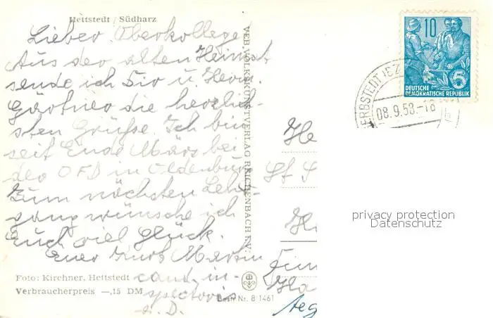 Hettstedt Stadtpanorama Hettstedt postalisch gelaufen 1958 Erhaltung siehe scans [FriedD77] Frierer