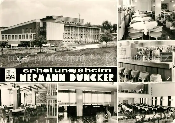 AK / Ansichtskarte Heubach_Thueringen FDGB Erholungsheim Hermann Duncker Cafe Bar Speisesaal Foyer Bauernstube Heubach Thueringen