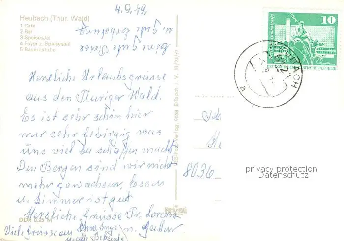 Heubach_Thueringen FDGB Erholungsheim Hermann Duncker Cafe Bar Speisesaal Foyer Bauernstube Heubach Thueringen postalisch gelaufen 1979 Erhaltung siehe scans [FriedD77] Frierer