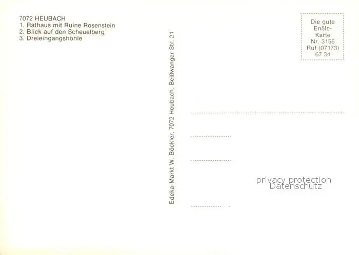 Heubach_Wuerttemberg Rathaus mit Ruine Rosenstein Scheuelberg Dreieingangshoehle Heubach Wuerttemberg postalisch nicht gelaufen nach 1965 Erhaltung siehe scans [WerneD78] WernPID7