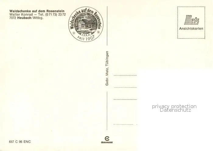 Heubach_Wuerttemberg Waldschenke Rosenstein Feuerstelle Gastraum Burgruine Heubach Wuerttemberg postalisch nicht gelaufen nach 1965 Erhaltung siehe scans [WerneD78] WernPID7