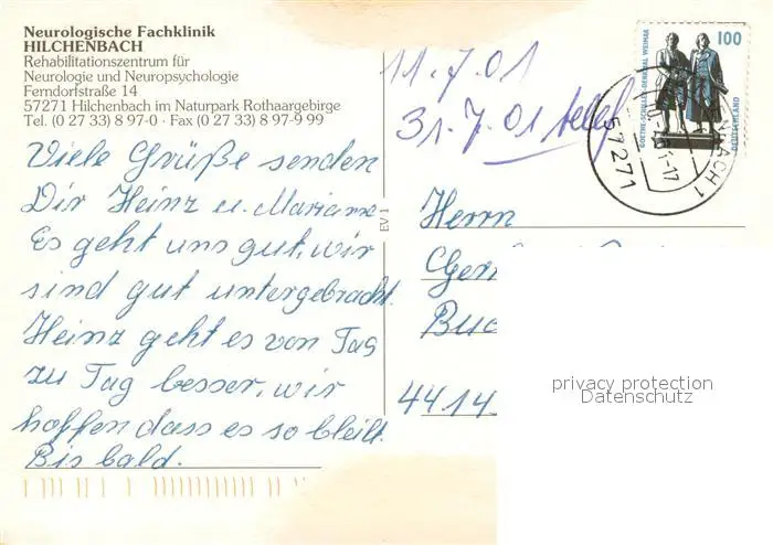 Hilchenbach Neurologische Fachklinik Fliegeraufnahme postalisch gelaufen 2001 Erhaltung siehe scans [WerneD78] WernPID7