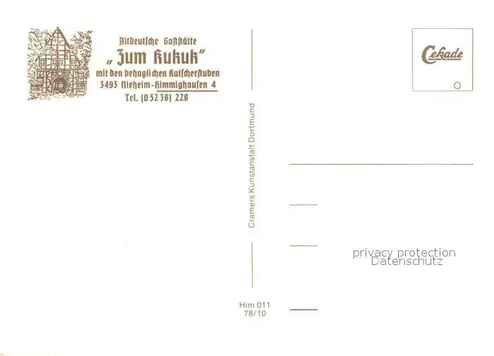 Himmighausen Altdeutsche Gaststaette Zum Kukuk Gastraum Himmighausen postalisch nicht gelaufen nach 1965 Erhaltung siehe scans [WerneD78] WernPID7