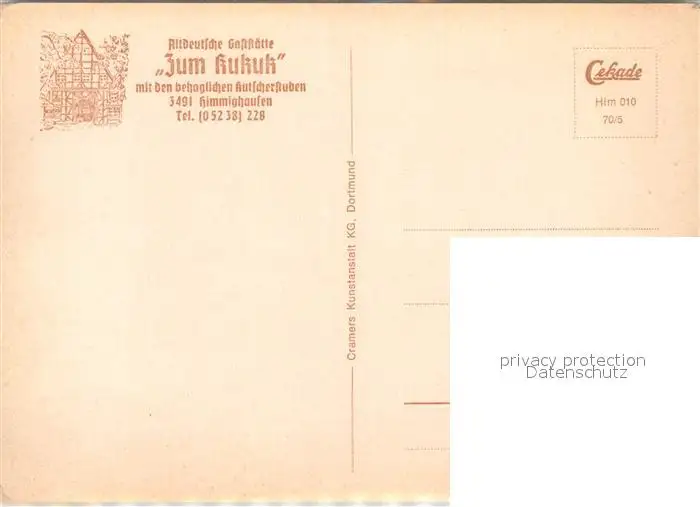 Himmighausen Altdeutsche Gaststaette Zum Kukuk Kutscherstuben Himmighausen postalisch nicht gelaufen nach 1965 Erhaltung siehe scans [WerneD78] WernPID7