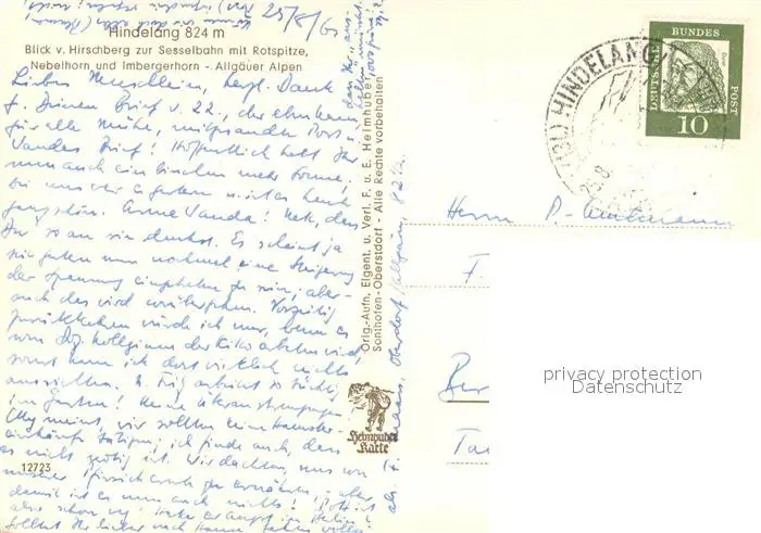 Hindelang Blick vom Hirschberg zur Sesselbahn mit Rotspitze Nebelhorn und Imbergerhorn Hindelang postalisch gelaufen 1962 Erhaltung siehe scans [WerneD78] WernPID7