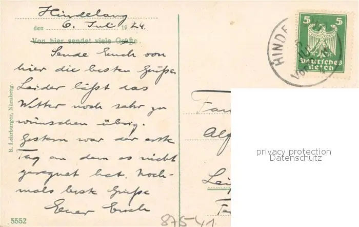 Hindelang mit Iseler Rauhorn und Kugelhorn Hindelang postalisch gelaufen 1924 Erhaltung siehe scans [WerneD78] WernPID7