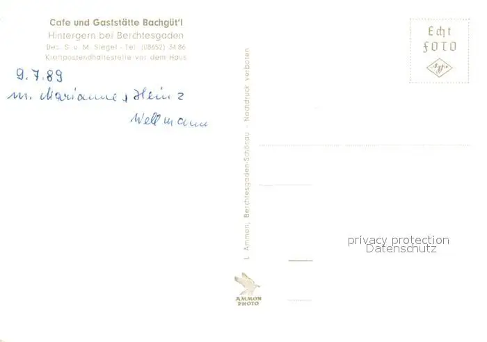 Hintergern Cafe Gaststaette Bachguetl Hintergern postalisch nicht gelaufen 1989 Erhaltung siehe scans [WerneD78] WernPID7