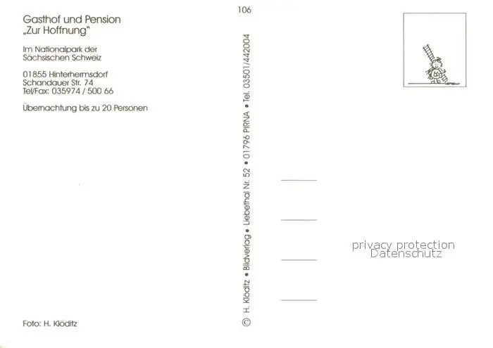 Hinterhermsdorf Gasthof Pension Zur Hoffnung Landschaftspanorama Hinterhermsdorf postalisch nicht gelaufen nach 1965 Erhaltung siehe scans [FriedD77] Frierer