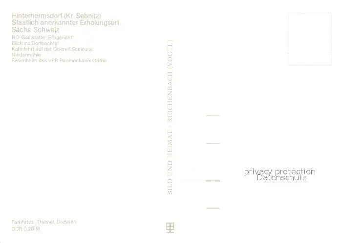 Hinterhermsdorf HOG Erbgericht Dorfbachtal Kahnfahrt auf der Oberen Schleuse Niedermuehle Ferienheim des VEB Baumechanik Gotha Hinterhermsdorf postalisch nicht gelaufen nach 1965 Erhaltung siehe scans [WerneD78] WernPID7