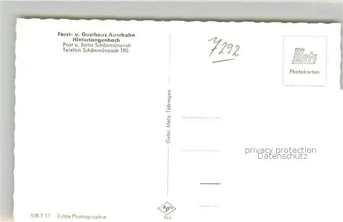 Hinterlangenbach_Baiersbronn Forst und Gasthaus Auerhahn Hinterlangenbach postalisch nicht gelaufen 1921-1965 Erhaltung siehe scans [WerneD78] WernPID7