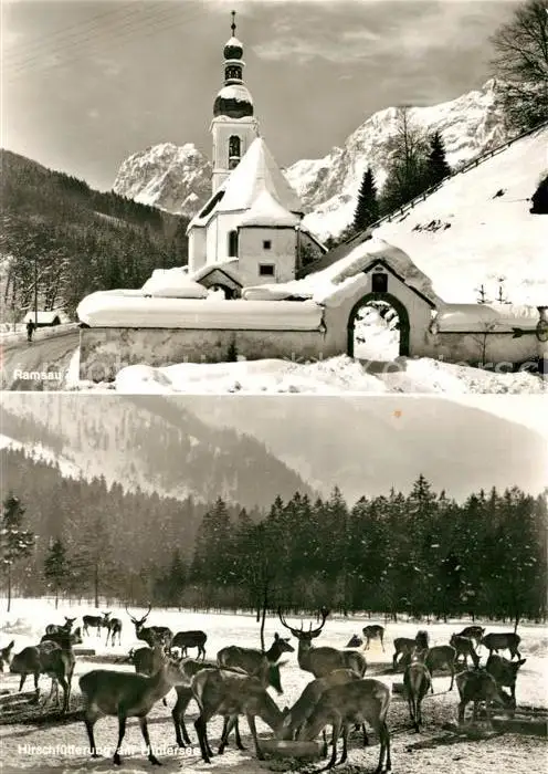 AK / Ansichtskarte Hintersee_Berchtesgaden Hirschfuetterung in der Ramsau im Hintergrund Reiteralpe Hintersee Berchtesgaden