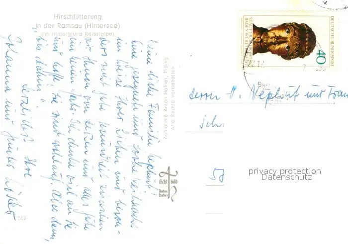 Hintersee_Berchtesgaden Hirschfuetterung in der Ramsau im Hintergrund Reiteralpe Hintersee Berchtesgaden postalisch gelaufen 1977 Erhaltung siehe scans [FriedD77] Frierer