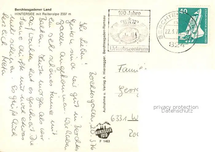 Hintersee_Berchtesgaden Reiteralpe Winterlandschaft Hintersee Berchtesgaden postalisch gelaufen 1976 Erhaltung siehe scans [KathaD81] Kathoren