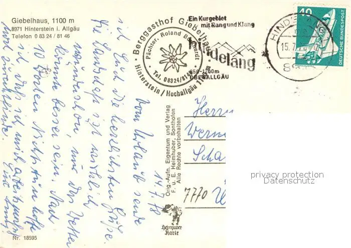 Hinterstein_Bad_Hindelang Berggasthof Giebelhaus Hinterstein_Bad_Hindelang postalisch gelaufen 1976 Erhaltung siehe scans [WerneD78] WernPID7