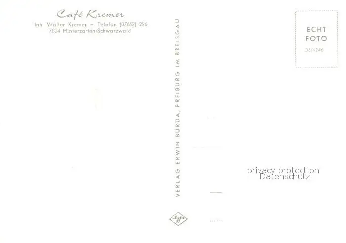 Hinterzarten Café Kremer Hinterzarten postalisch nicht gelaufen ca. 1960 Erhaltung siehe scans [FriedD77] Frierer