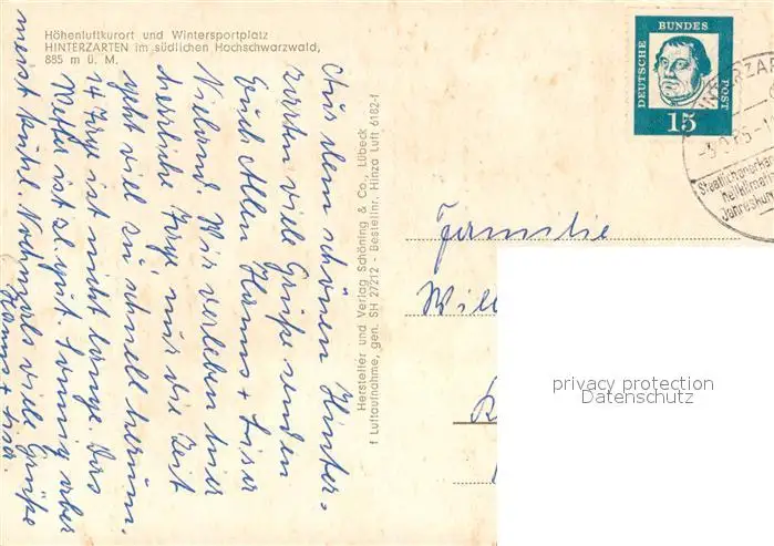 Hinterzarten Kategorie Alte Ansichtskarten Postkarten bx87702 Hinterzarten Fliegeraufnahme Hinterzarten postalisch gelaufen 1965 Erhaltung siehe scans [LiesaD40]