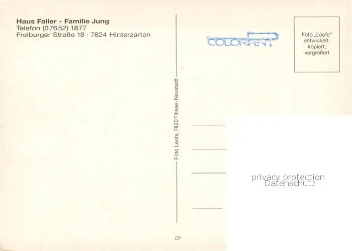 Hinterzarten Haus Faller Hinterzarten postalisch nicht gelaufen nach 1965 Erhaltung siehe scans [WerneD78] WernPID7
