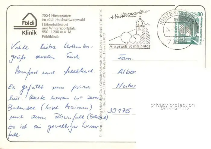 Hinterzarten Hoehenluftkurort im Schwarzwald Hinterzarten postalisch gelaufen 1994 Fliegeraufnahme Erhaltung siehe scans [FriedD77] Fliegeraufnahme Frierer