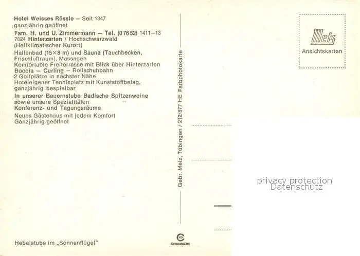 Hinterzarten Hotel Weisses Roessle Hinterzarten postalisch nicht gelaufen nach 1965 Erhaltung siehe scans [WerneD78] WernPID7