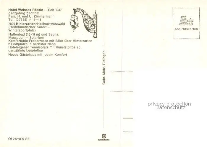 Hinterzarten Hotel Weisses Roessle im Winter Nachtaufnahme Hinterzarten postalisch nicht gelaufen nach 1965 Erhaltung siehe scans [FriedD77] Frierer
