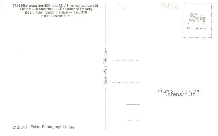 Hinterzarten Kategorie Alte Ansichtskarten Postkarten bx93632 Hinterzarten Kaffee Konditorei Restaurant Imbery Hinterzarten postalisch nicht gelaufen nach 1965 Erhaltung siehe scans [WerneD78]